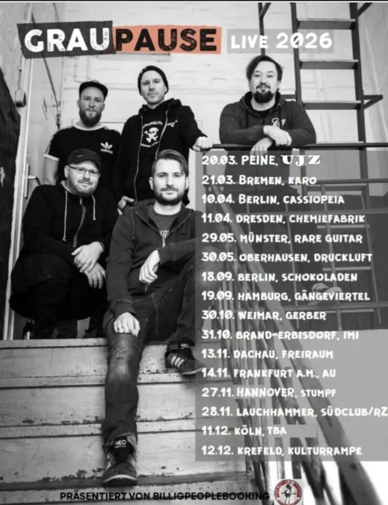 20.03.2026: Graupause & Abfluss Datum/Zeit Datum - 20.03.202620:00 - 23:59 Website Punkband Graupause Website Abfluss