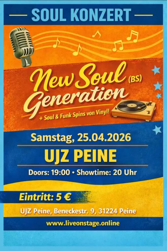 25.04.2026: New Soul Generation Datum/Zeit Datum - 25.04.202620:00 - 23:59 International Soul & Funk band New Soul Generation
